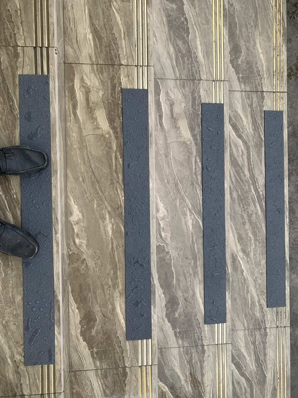 - Chống trượt mạnh tại mép bậc – vùng chịu lực chính khi bước chân, giúp lên xuống cầu thang an toàn hơn, kể cả khi sàn ướt.