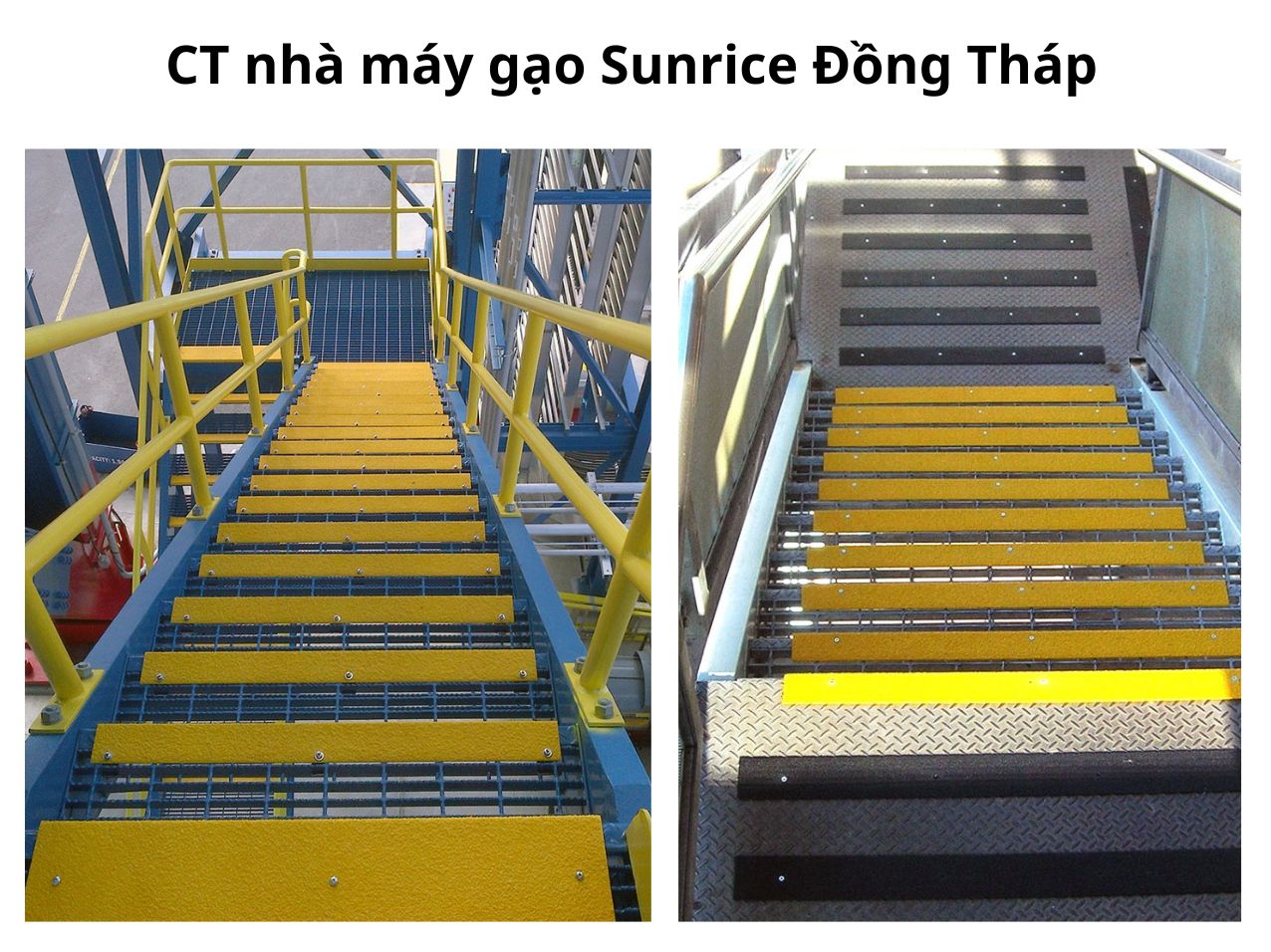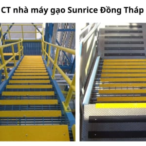 - Nhà máy gạo Sunrice (Úc) tại Đồng Tháp: chống trượt cầu thang trong môi trường bụi gạo, ẩm, tần suất đi lại cao.