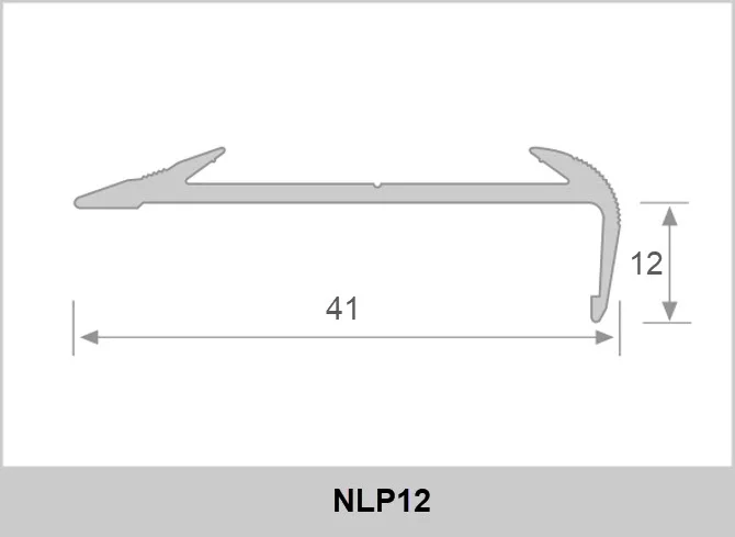 Nẹp chống trượt cầu thang NLP12, nẹp mũi bậc chân cao 12mm chuyên dùng để nẹp mũi bậc cầu thang lát gạch/gỗ cho mục đích chống trơn trượt và tạo điểm nhấn trang trí.