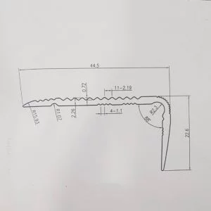 - Cấu tạo: thành phẩm của nẹp mũi bậc chống trơn NLP25 chỉ có phần chính là phần thanh hợp kim nhôm có gân sóng tăng tác dụng chống trơn