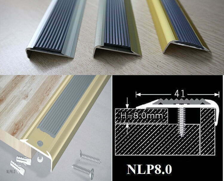 Nẹp chống trơn NLP8 phù hơp cho cầu thang lát gạch mỏng, nhỏ hơn 8mm, sử dụng để che mũi bậc, vừa tạo điểm nhấn vừa chống trơn trượt hiệu quả.