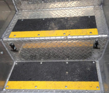Cầu thang nhà máy thực phẩm có nhiều dầu mỡ thường xuyên xảy ra trơn trượt cho công nhân.