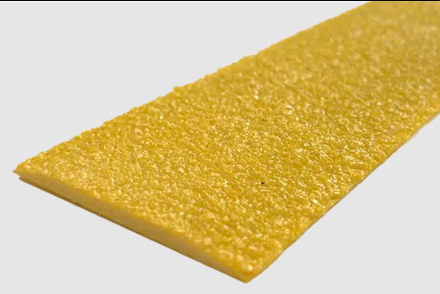 Thanh phẳng chống trượt FRP có hiệu quả chống trượt cao kể cả với dầu mỡ, không bị ăn mòn bởi hóa chất hay nước biển, điều mà các tấm chống trượt băng kim loại không thể làm được.