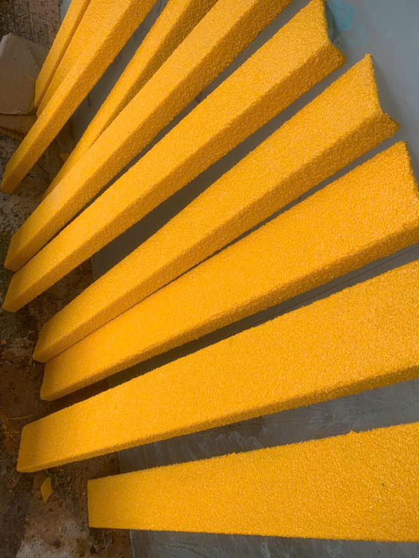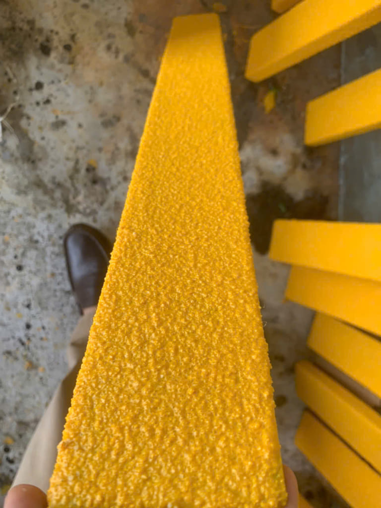 Dưới đây là cầu thang thép gân được xử lý lại bằng thanh composite chống trượt