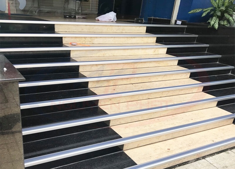 Nẹp chống trượt cầu thang gồm nhiều chất liệu khác nhau từ nhôm, inox, nhựa pvc…